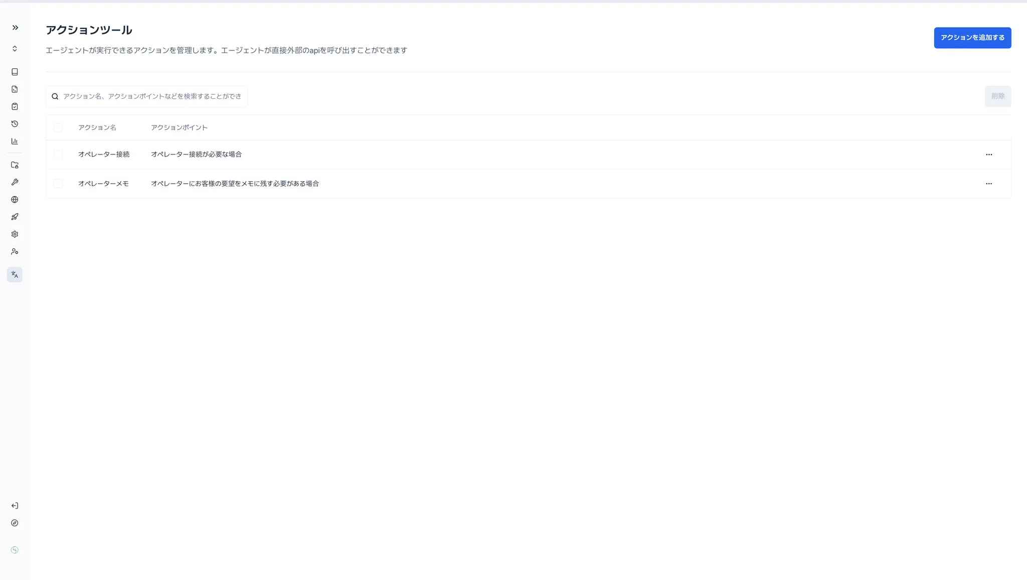 アクションツールは、エージェントが特定の条件下で外部APIを呼び出し、アクション(処理)を実行できる機能です。