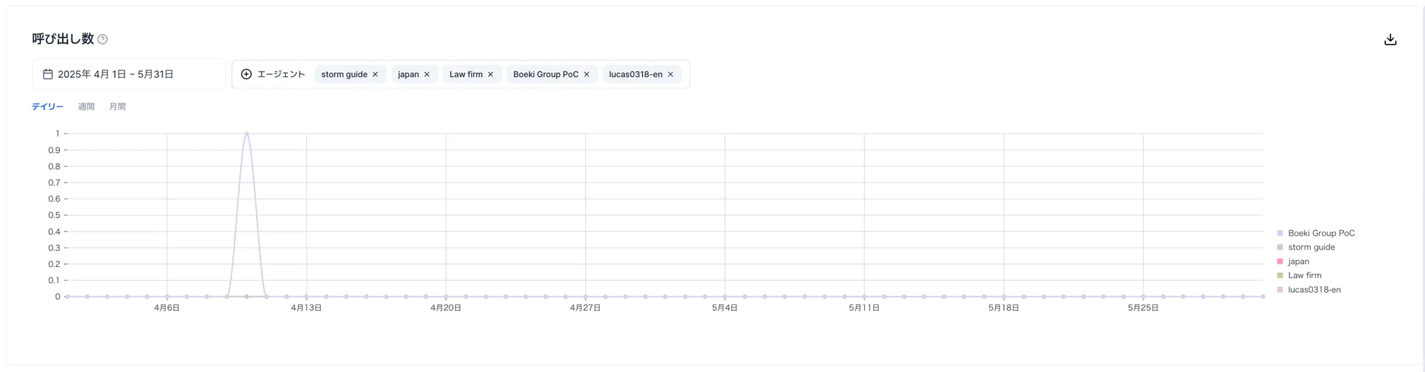 → 集計期間中の各エージェントごとの呼び出し履歴や利用傾向が確認できます。