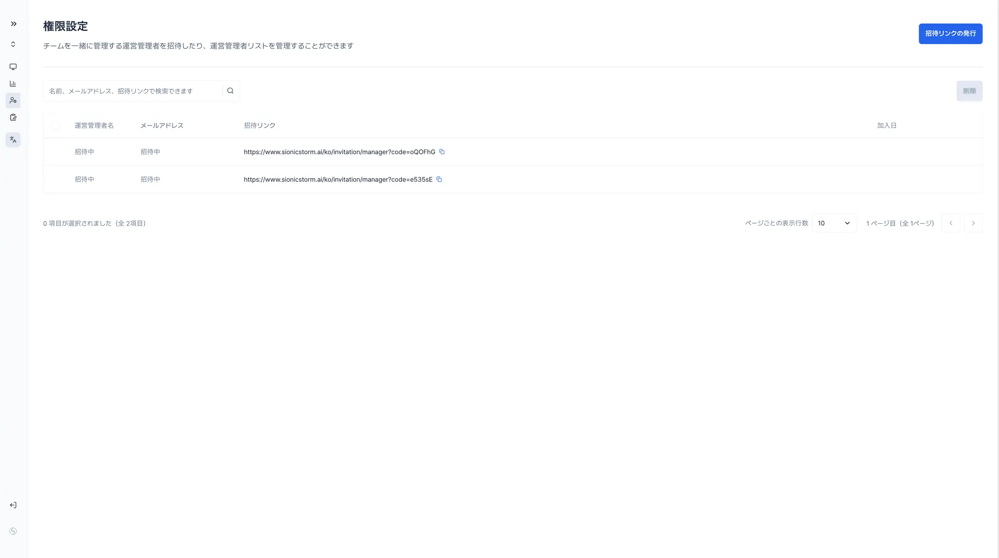 招待リンクを発行します
