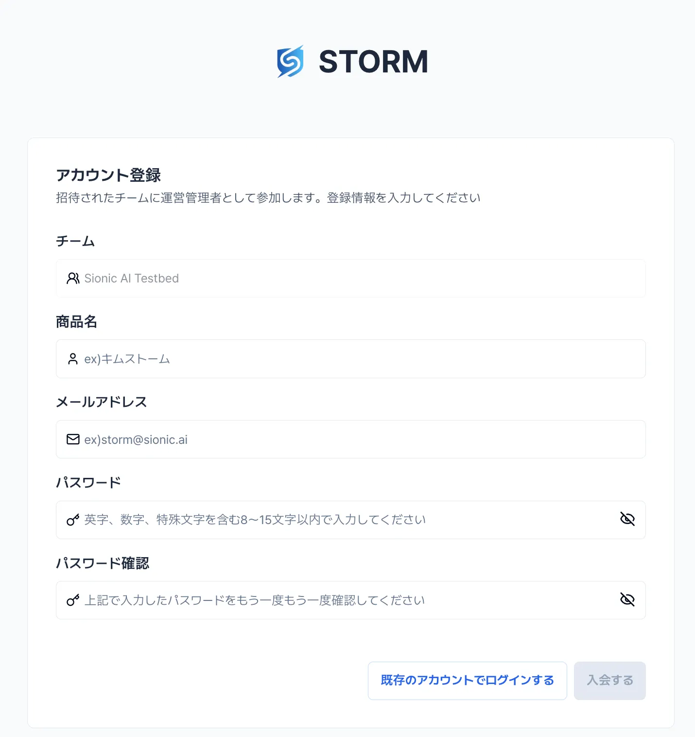 STORMに新規登録し、チームを作成したユーザーには自動的に管理者権限が付与されます。