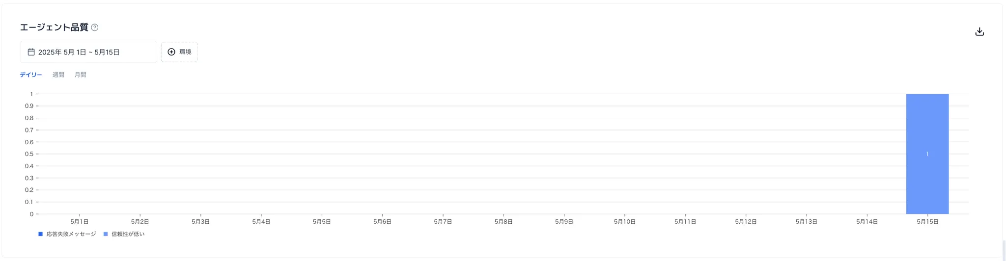 信頼スコア0.5未満の応答数 | 応答内容の信頼性が低いと判断された件数(確認・改善対象) |