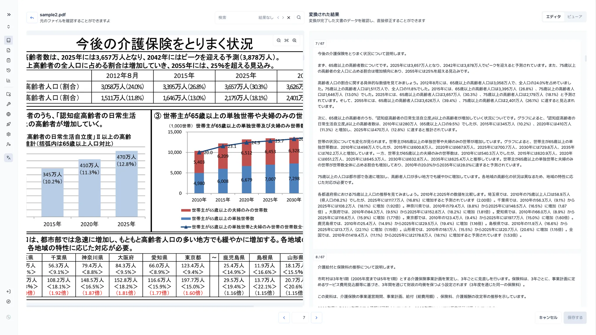 レイアウトが複雑なドキュメント(複数カラム、テキストボックス、特殊書式など)