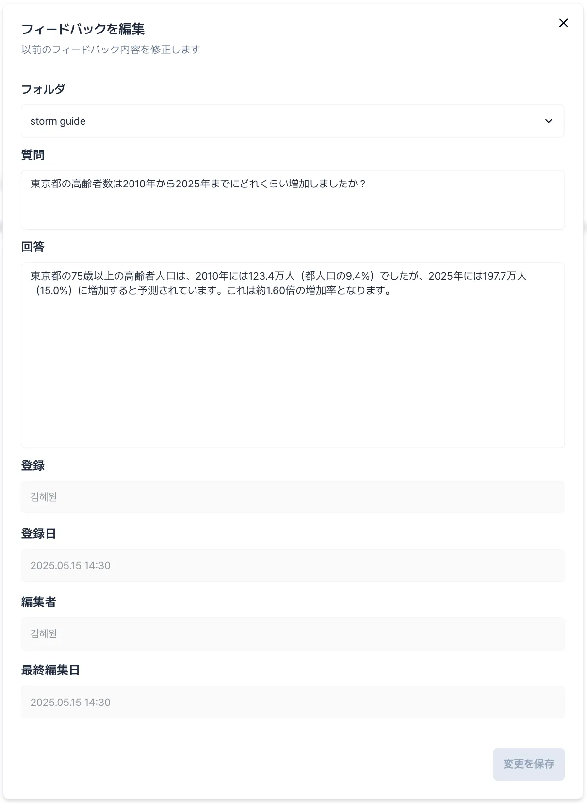 この情報は、次に類似した質問があった際に、AIがより適切に答えられるように活用されます。