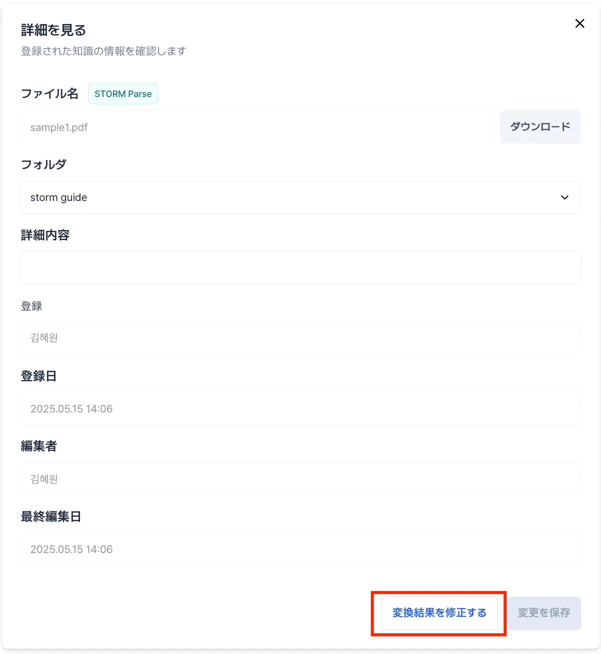 左側に表示された原文を確認しながら、修正したい箇所を変更し、保存します。