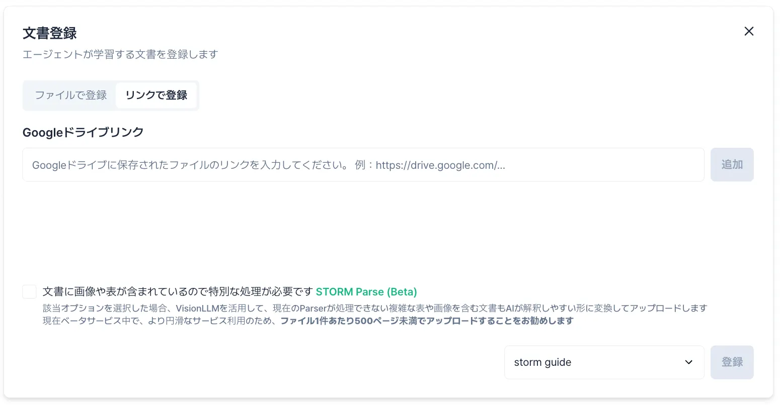 ※この設定がされていない場合、エージェントがドキュメントを学習することができません。