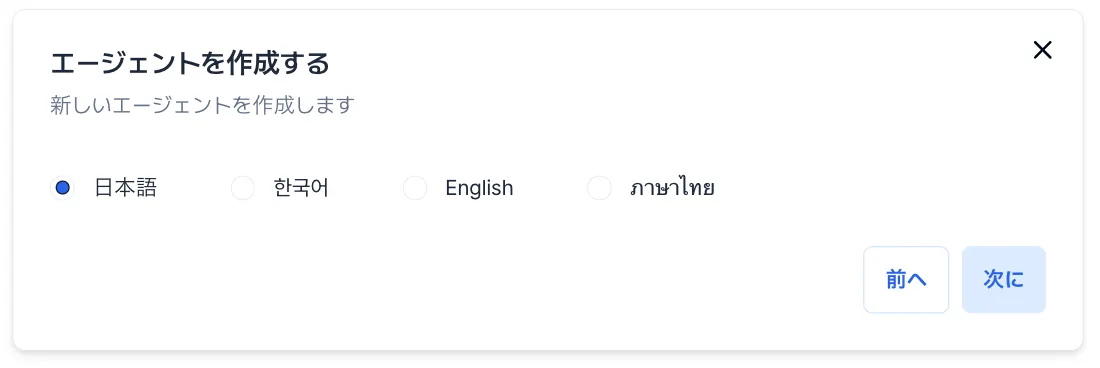 エージェントが使用する言語を選択します。