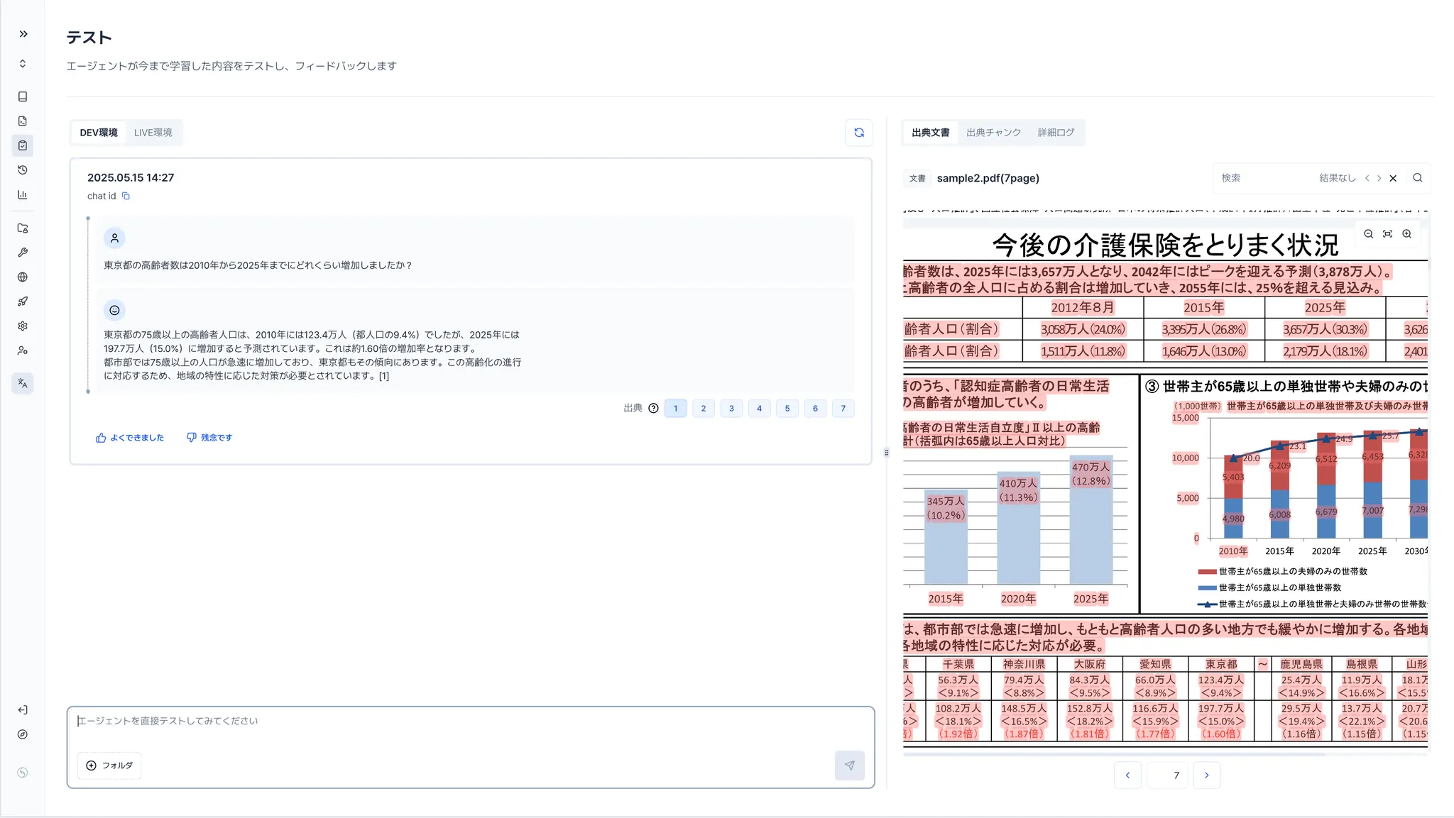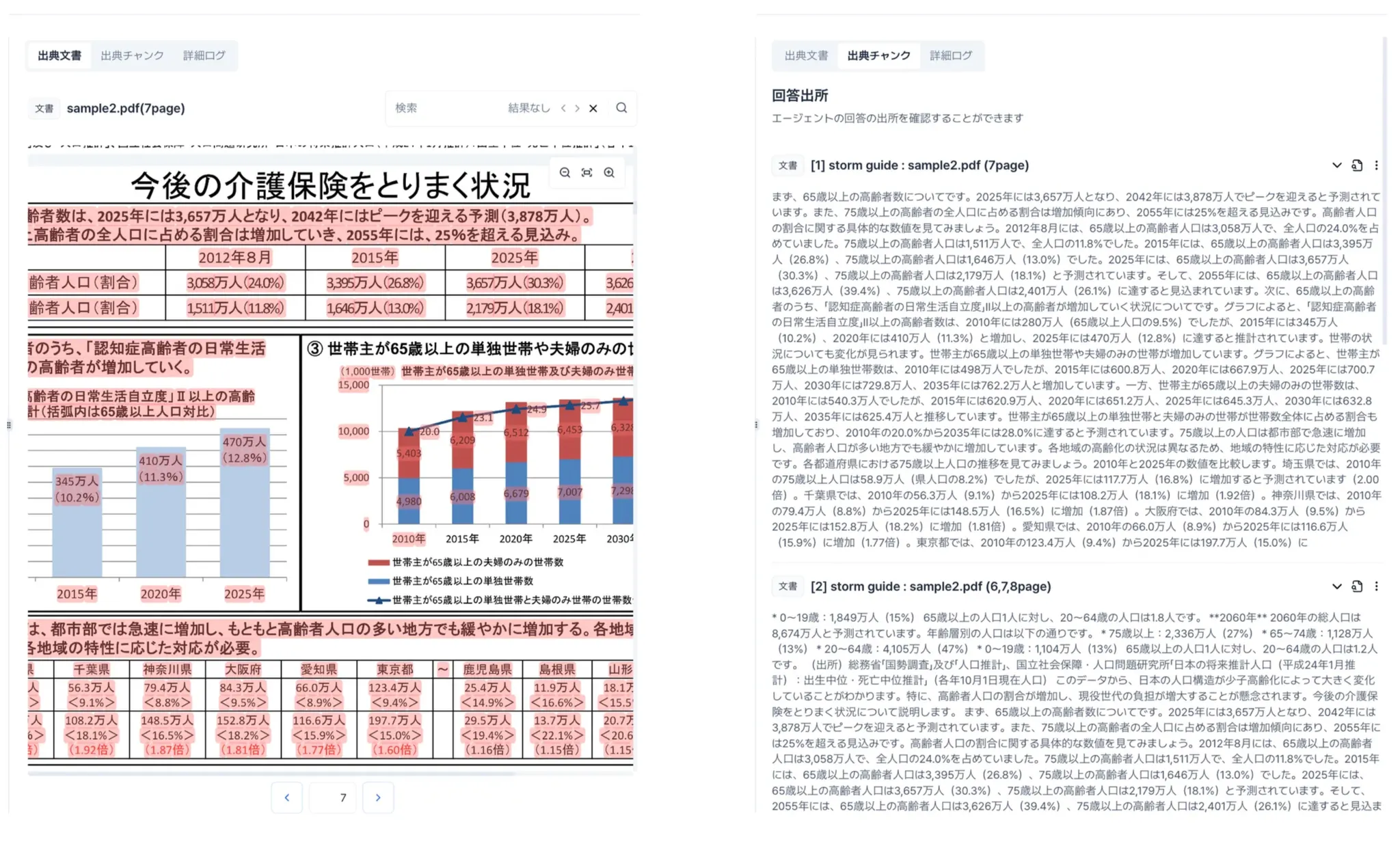 該当チャンクが抽出された元の文書を内蔵ビューア(PDF対応)で直接表示できます。