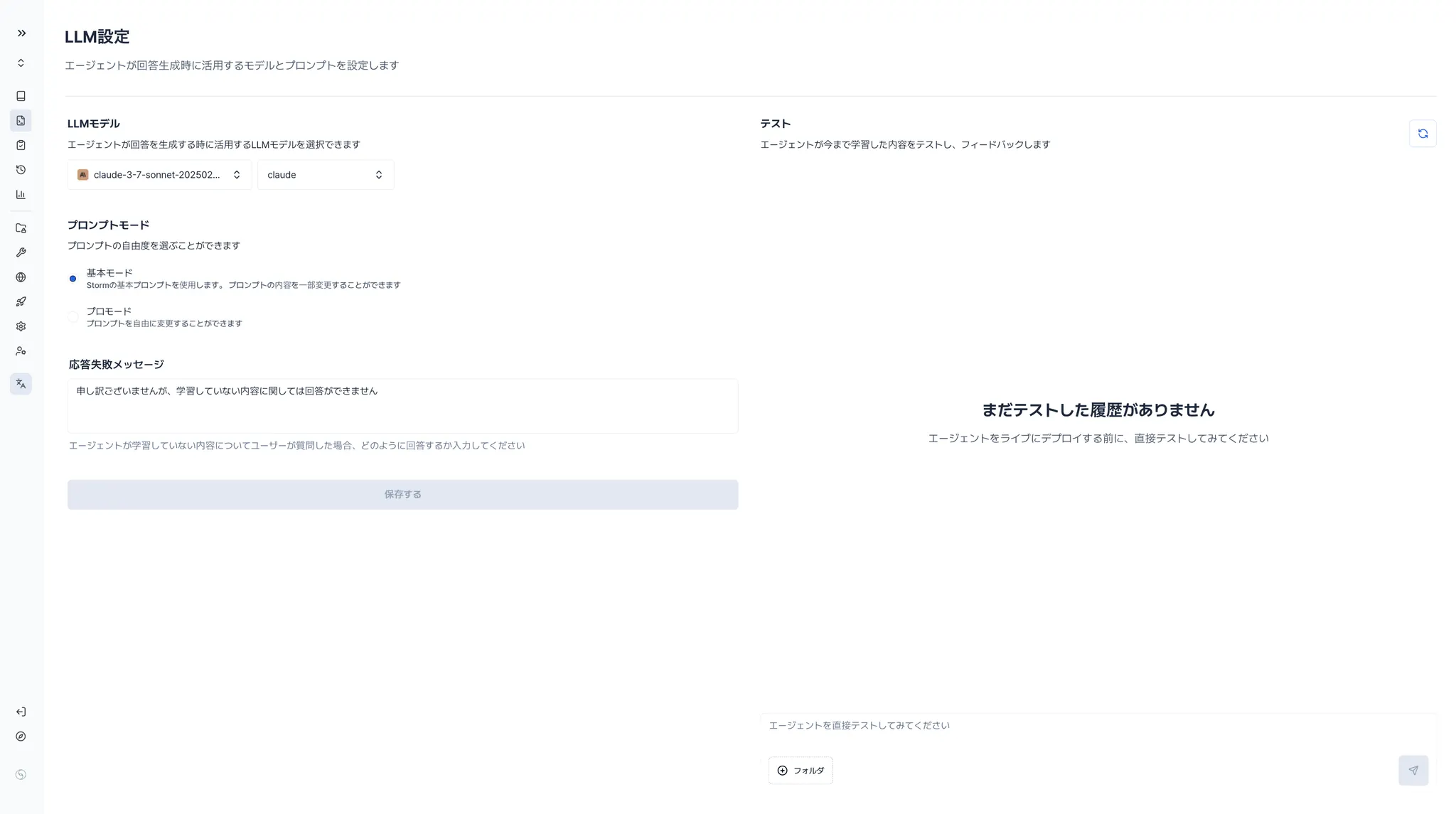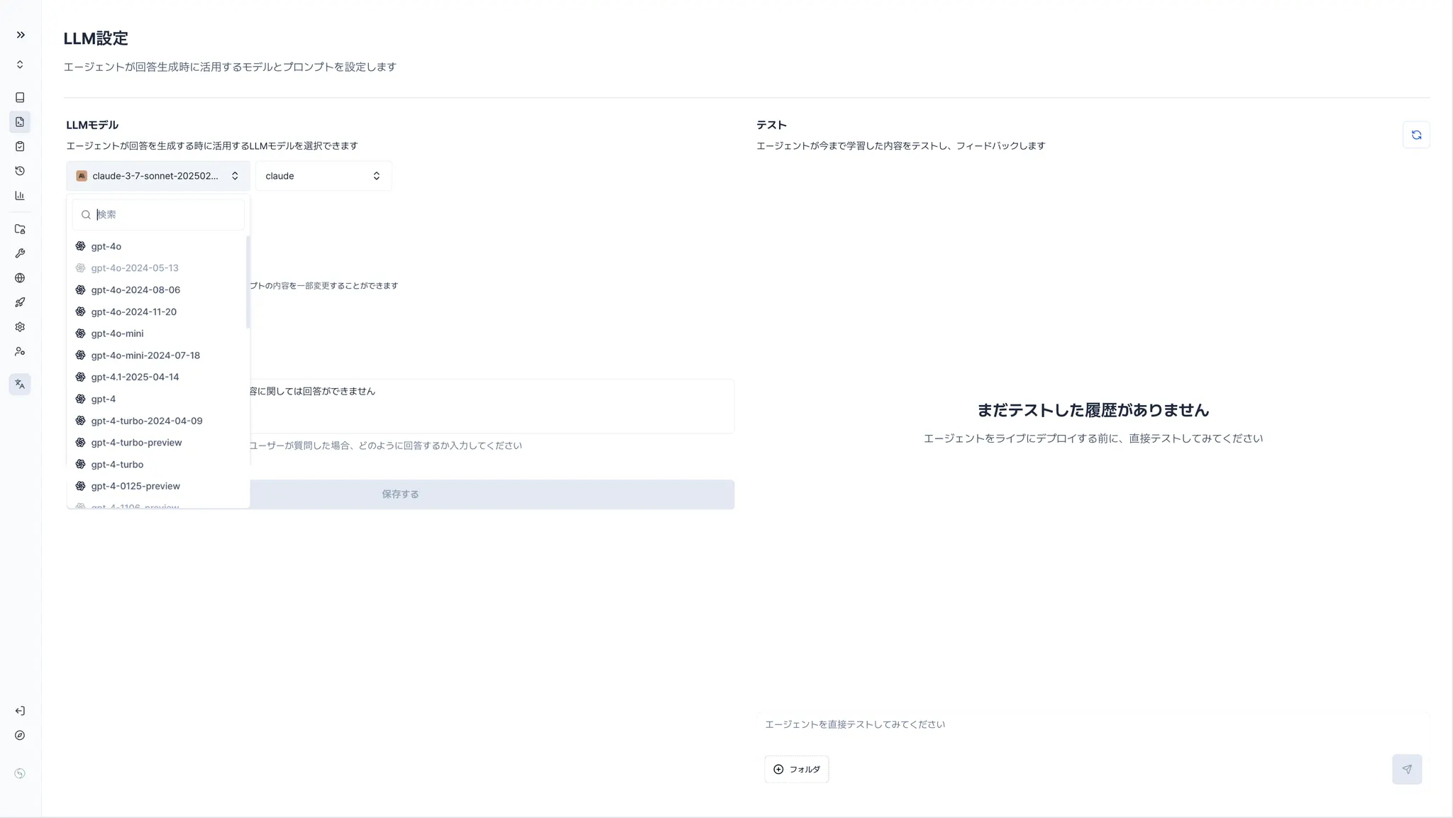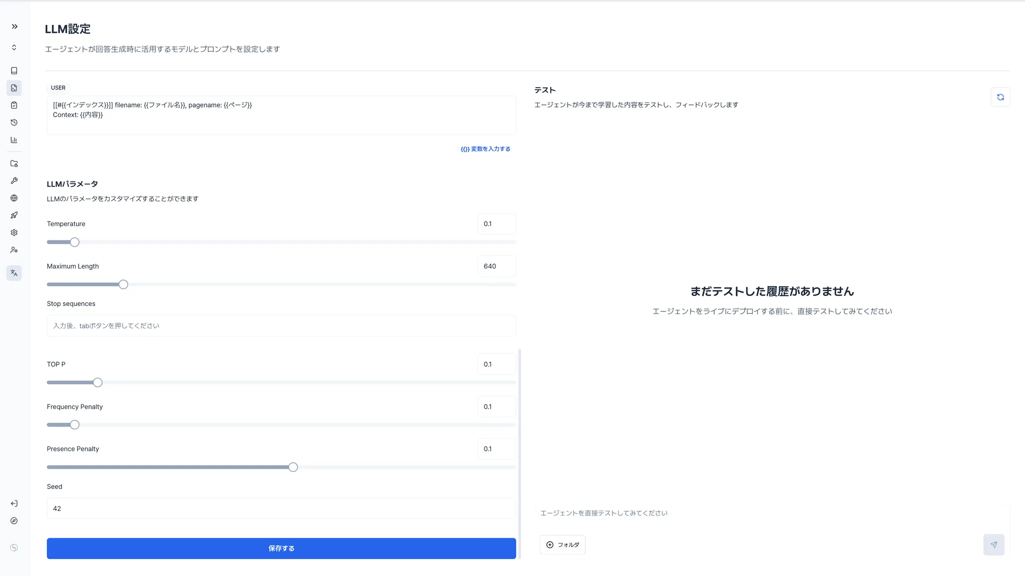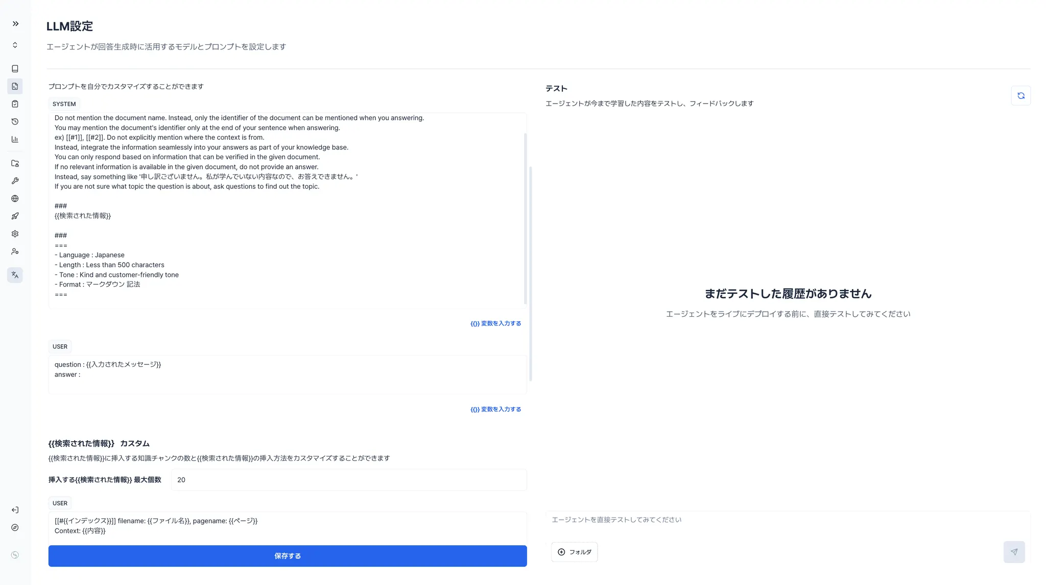 選択した言語は、RAG検索モデル、ドキュメント学習、LLMプロンプトなどに適用されます。